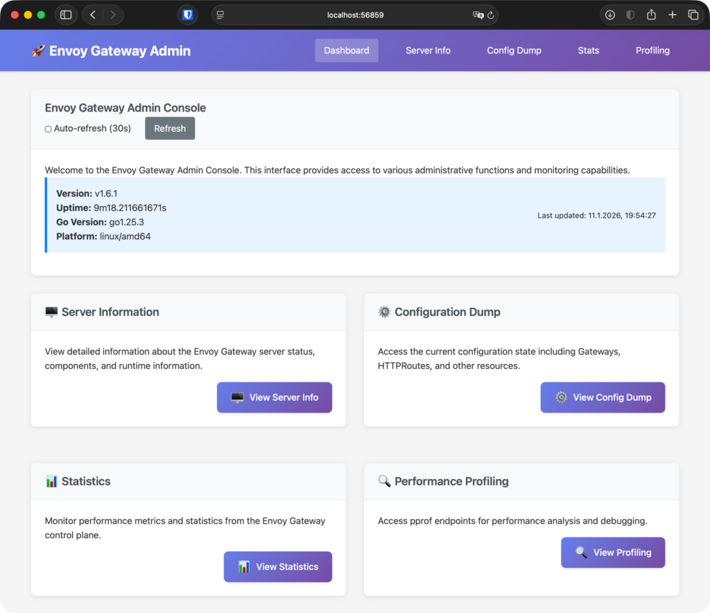 Opening browser to access the Envoy Gateway admin console...