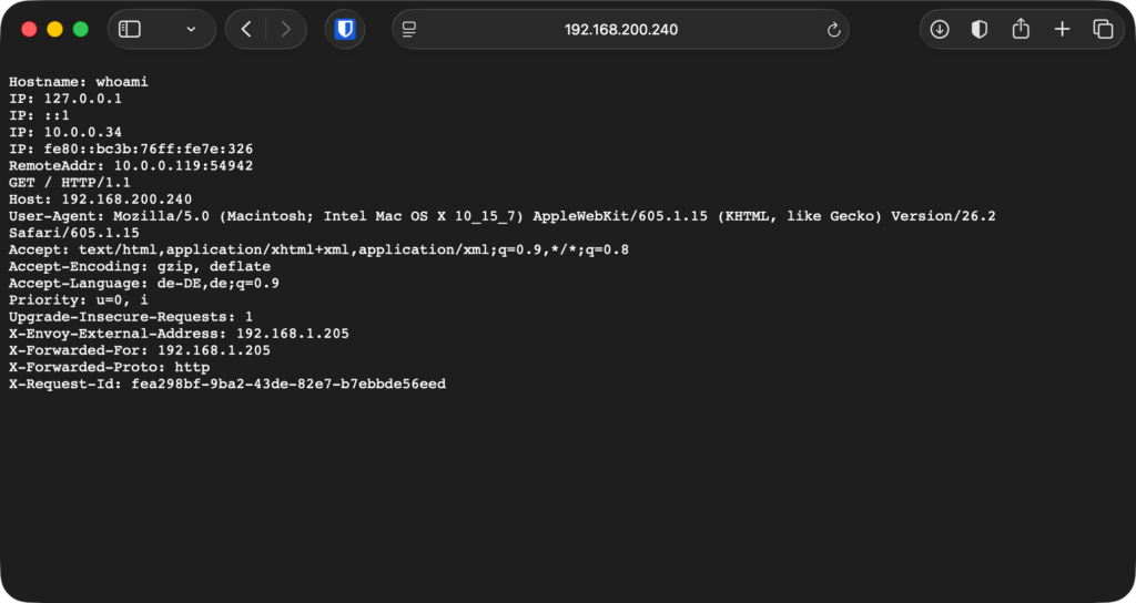 external-gateway envoy-gateway-class 192.168.200.240 True 122mZshUnd anschliessend noch eine kleine Test-Applikation: